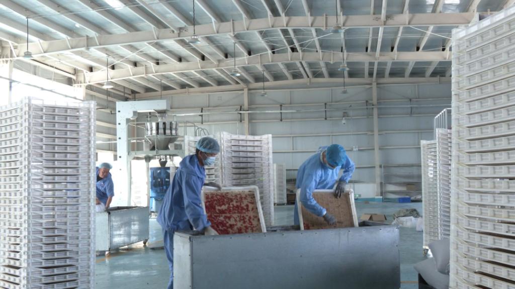 9月23日,记者走进精河县天山果业农业科技有限公司的生产包装车间,机器轰鸣声与工人忙碌的身影交织,一派热火朝天的景象。烘干设备不停运转,将新鲜枸杞加工成干果;工人们分工明确,熟练地对刚出炉的枸杞干果进行分装、打包,每一个包裹都将承载着节日的祝福,发往不同地区的客户手中。