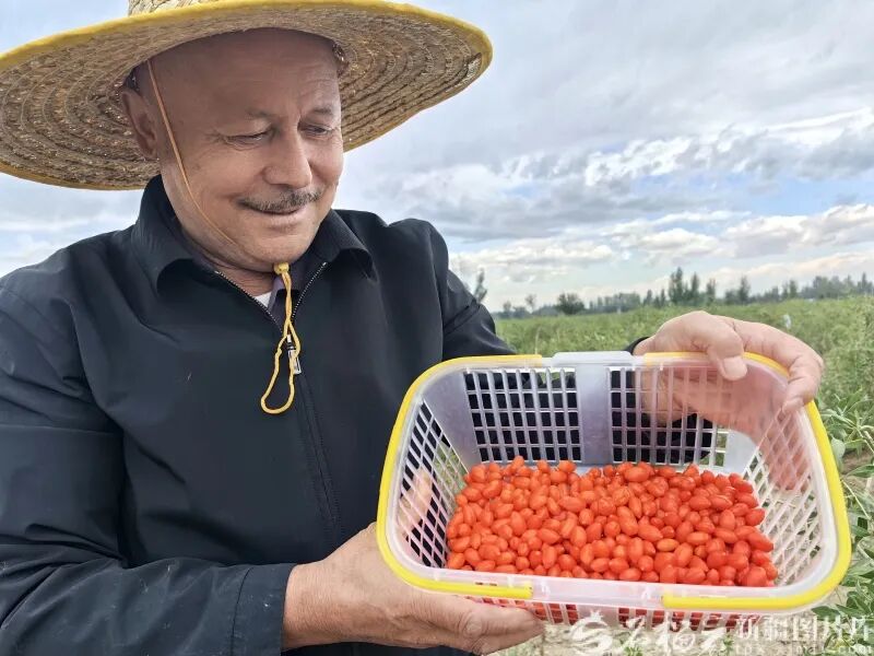精河县党委常委孟克布音介绍,过去,枸杞多为农户小面积分散种植,管理方式粗放,标准化种植水平较低。如今,枸杞种植模式更加标准化,从2022年起,构建“党委领导、政府搭台、国企引领、民企参与、镇村服务、合作社领种、农民就业”的可持续发展模式,对枸杞种植示范基地实行“六统一分”管理(即统一规划、统一农资供应、统一技术指导、统一生产管理、统一质量检测、统一采收销售、分户管理),使所有枸杞品质达到了绿色食品标准。先后建成10万亩绿色枸杞高标准示范基地,其中2万亩获得绿色枸杞产品认证。