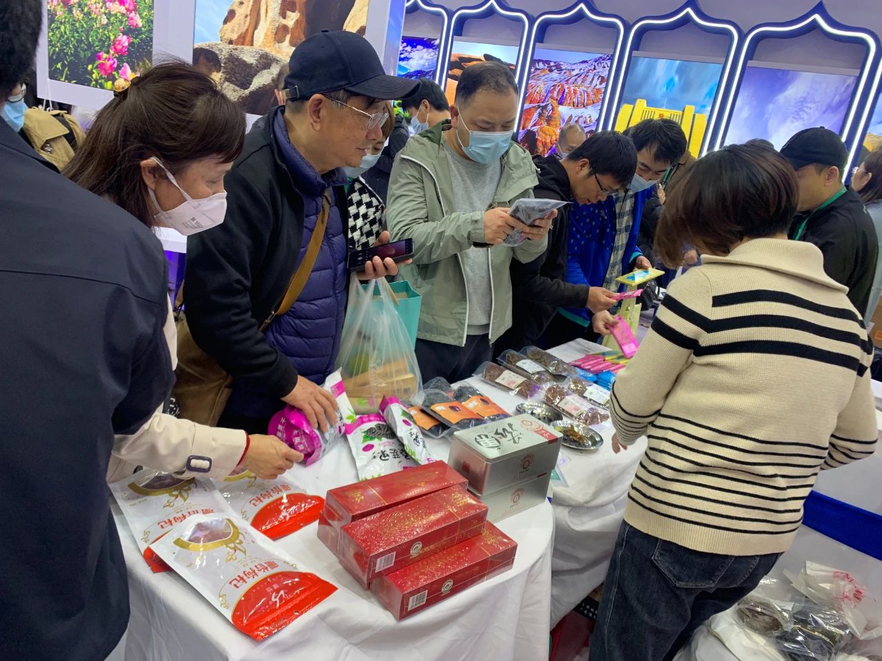展馆内,开放式的布展格局让游客们通过沉浸式、互动性的方式走进博州、走进精河。精河展区聚拢着层层观众,参观、拍照、咨询、品尝、领取宣传资料的游客络绎不绝。