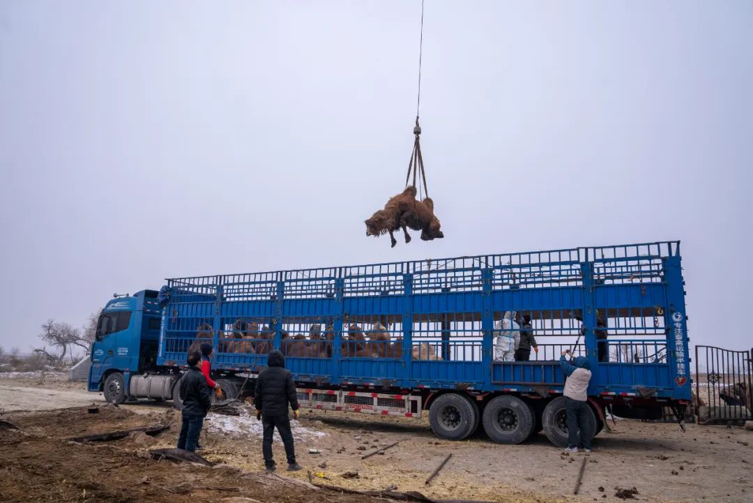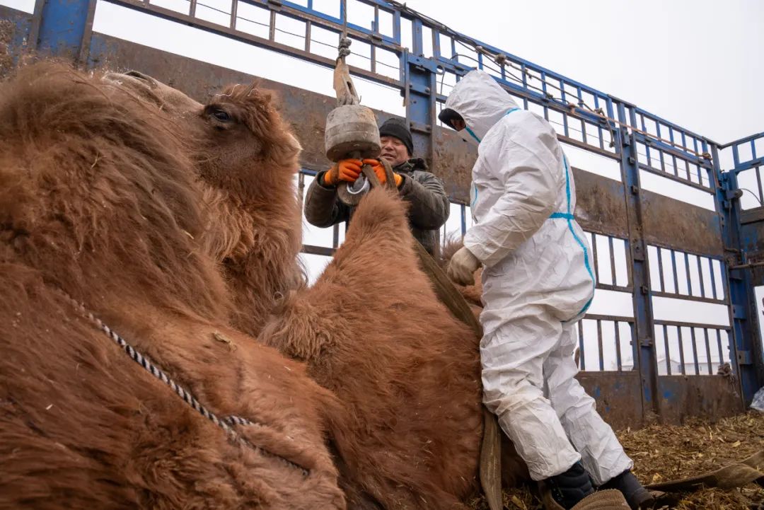 近日,在托托镇古尔图牧业村配种站,托托镇村级防疫员正和装卸人员使用吊车将骆驼卸下,确保每一峰骆驼都平安落地,并对每峰骆驼进行落地检疫。托托镇畜牧兽医站站长巴恒介绍说:“今天的主要工作是对这一批从青海拉运到托托镇的46峰骆驼,进行落地检疫监管。我们专门安排了3名村级防疫员,全程参与骆驼装卸过程,确保骆驼防疫检疫合格。”46峰骆驼,“客”从何来?原来是托托镇古尔图牧业村引进来自伊犁哈萨克自治州伊宁县的客商入驻,客商王化南经过前后两个月的实地考察与对接,最终于12月初与古尔图牧业村签订了养殖合作协议。