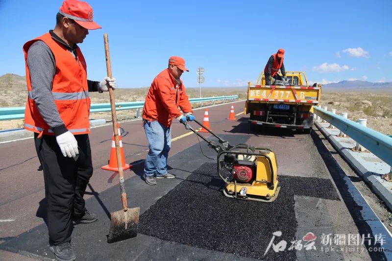 眼下正值旅游旺季,博乐公路事业发展中心精河养护所全力开展修补路面、整治路域环境等公路养护作业,为过往旅客提供安全、舒适、优质的行车环境。