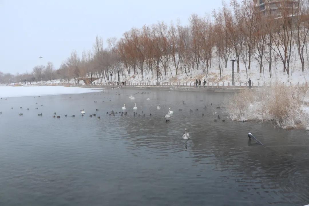 近年来,随着精河县生态环境持续恢复,县生态园人工湖每年冬天都会迎来天鹅、绿头鸭、麻鸭等野生鸟类。