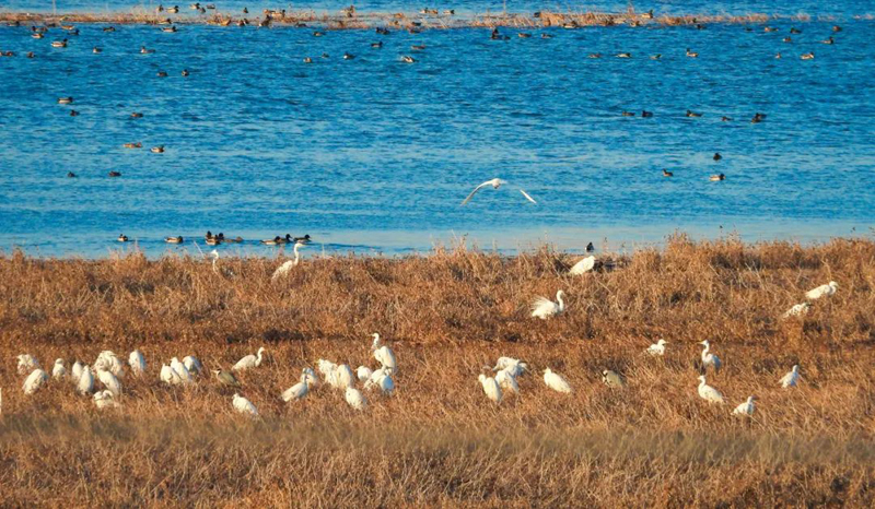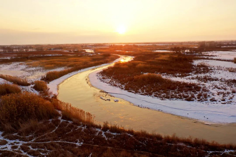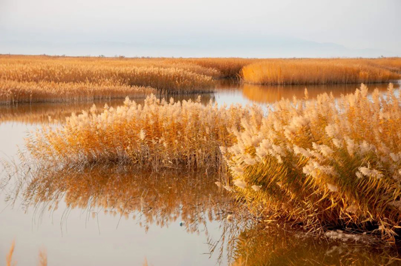 冬天的脚步近了高低错落的芦苇迎风飘荡似云般在风中摇曳演绎着冬日的一段曼妙风情呈现出一幅优美和谐的生态画卷