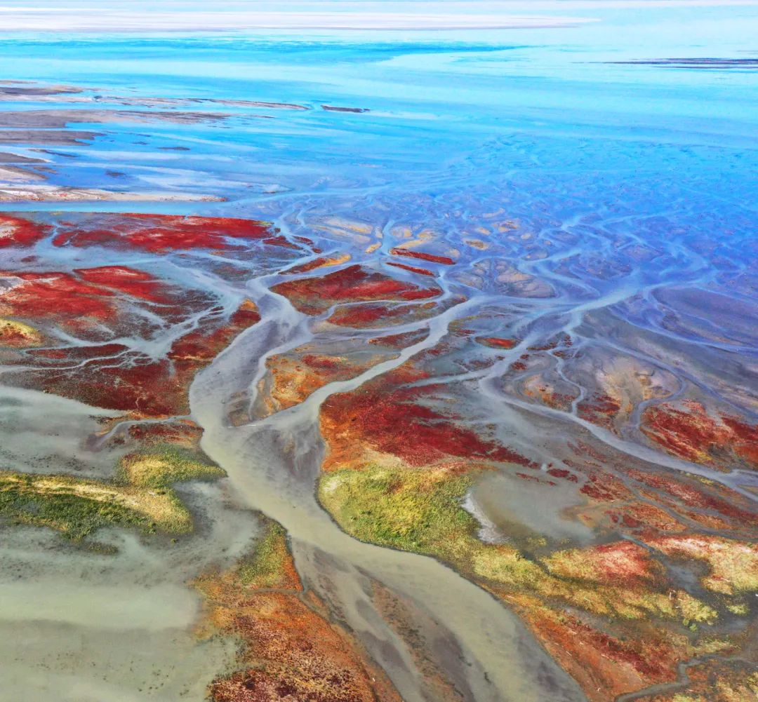 在盐碱卤渍里,年复一年地生生死死,死死生生。于光阴荏苒中,酿造出一片片火红的生命邑泽……