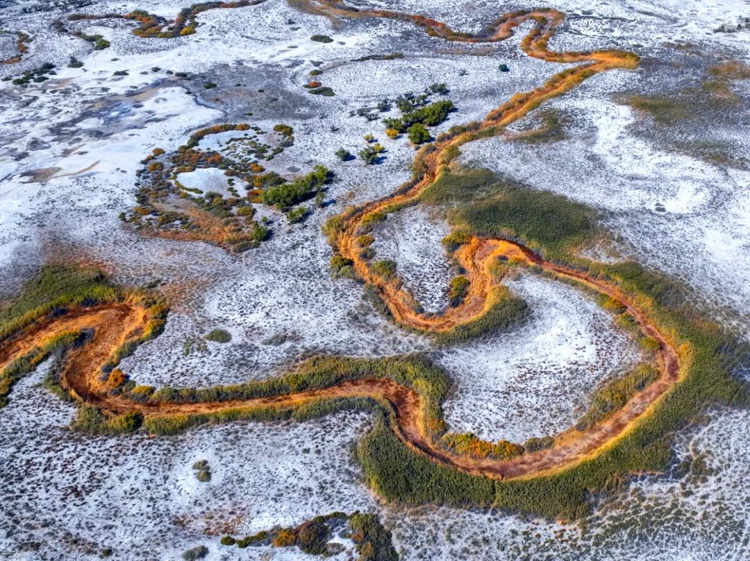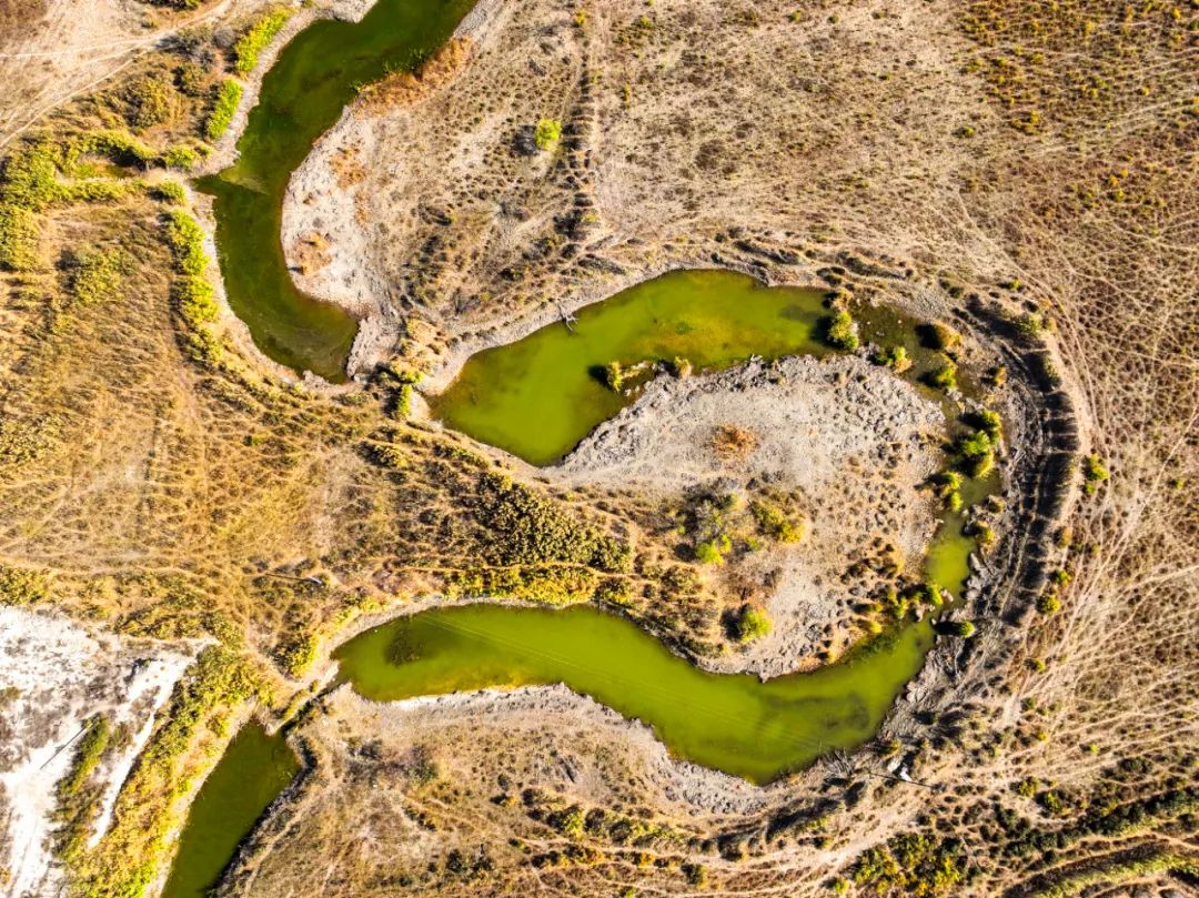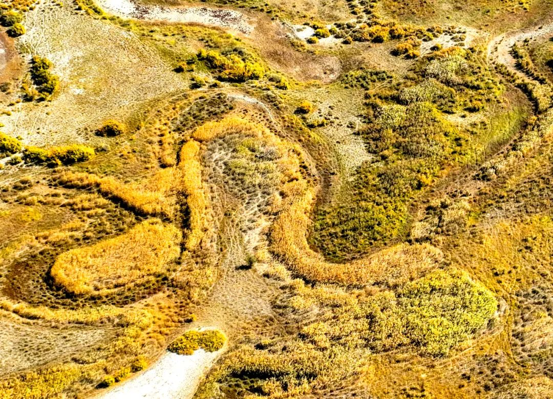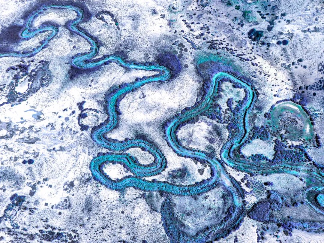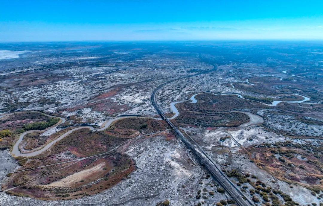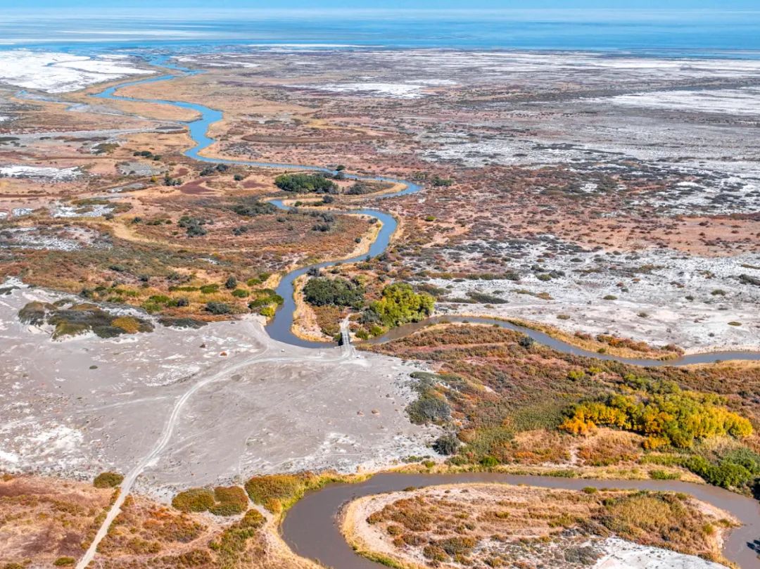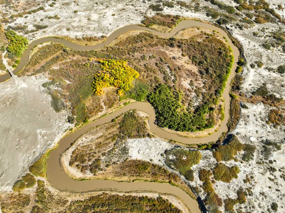 弯弯曲曲的河道在荒漠里穿行,