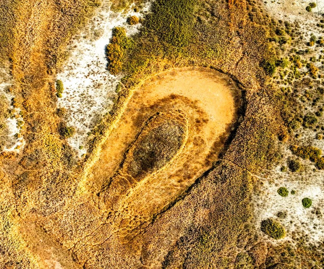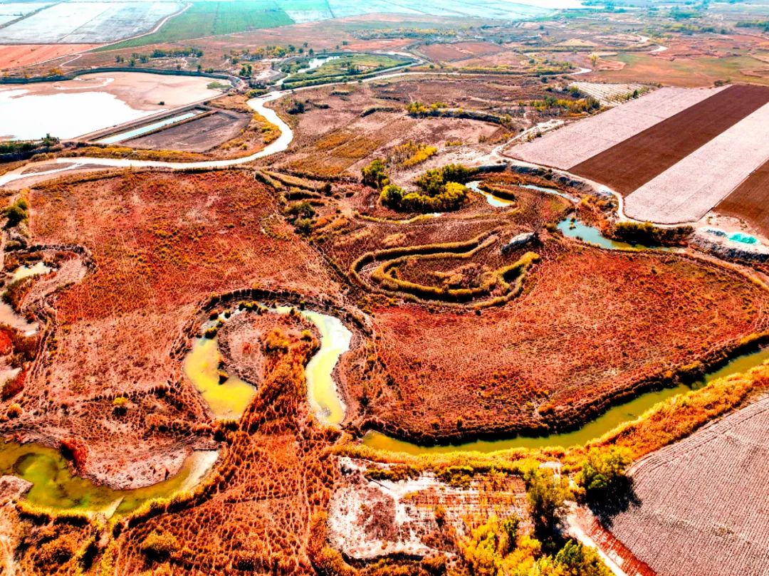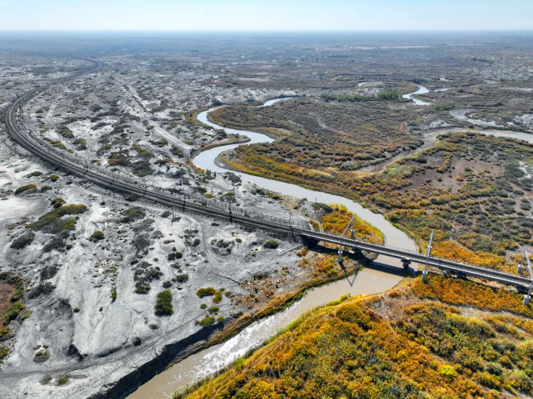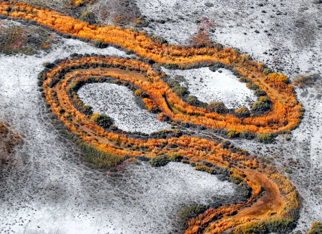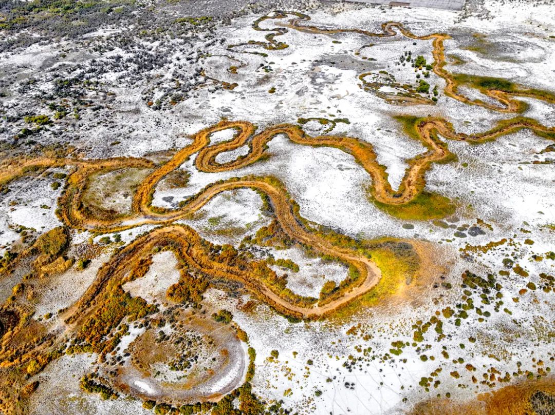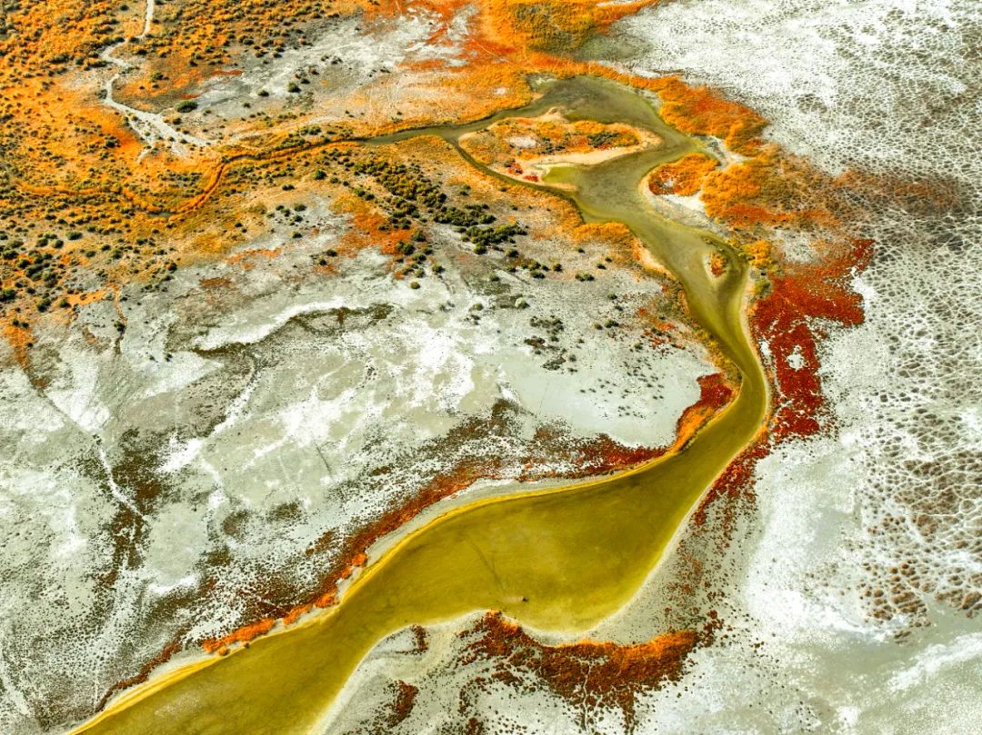 弯弯曲曲的河道在荒漠里穿行,