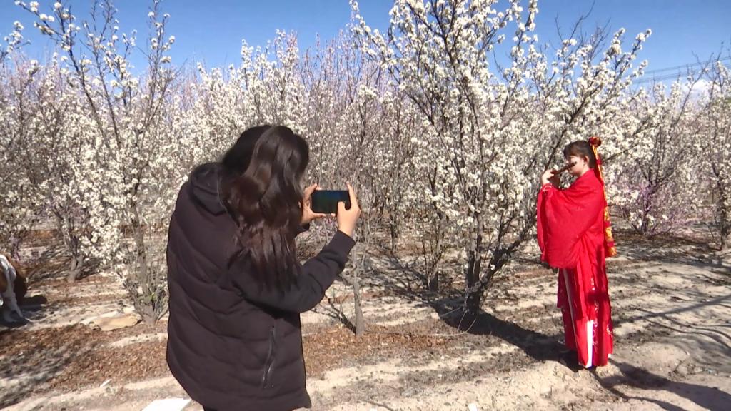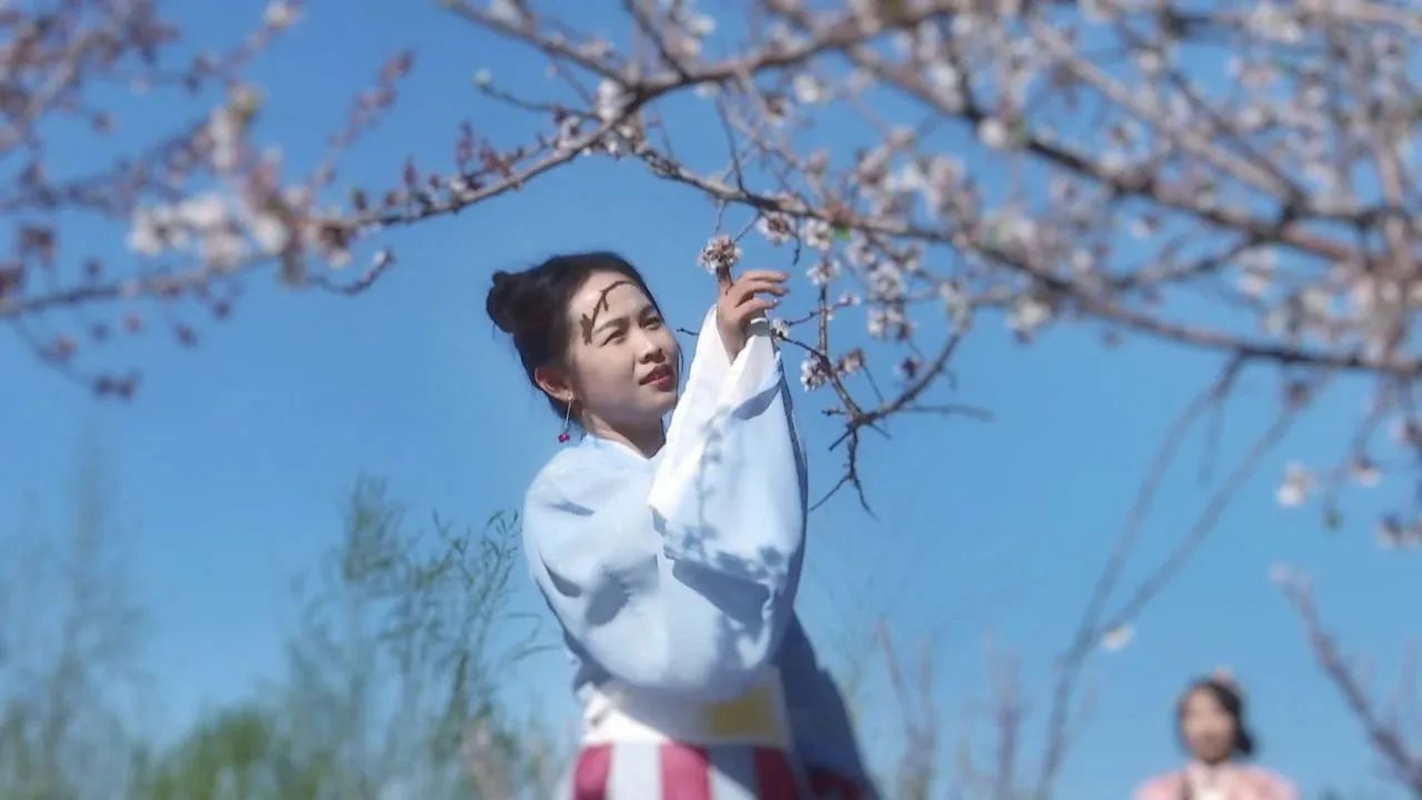 家住托托镇的拉扎提•达吾来提别克是一位汉服爱好者,平时就爱好摄影采风。在得知河西村的杏花盛开后,她便与好友来到这里,穿上精美的汉服,在杏花林中拍照,将汉服文化与杏花美景完美地融合。拉扎提•达吾来提别克说:“我通过抖音平台看到茫丁乡河西村的杏花开的很漂亮,今天天气也特别好,我就约着我的姐妹们来这里打卡。精河县有很多美丽的风景,以后我要和我的姐妹去每一个景点打卡,通过我们的视角来宣传美丽精河。”