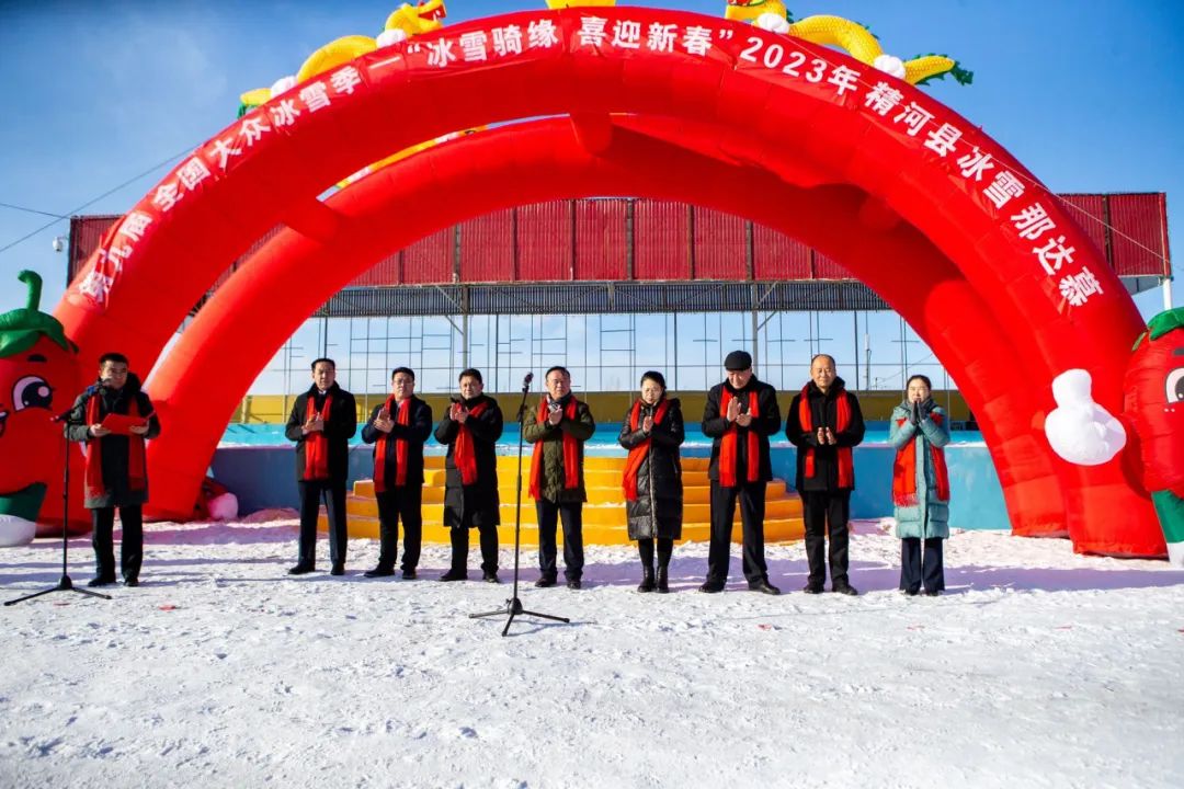 文旅促发展,冰雪迎新春,1月12日,“第九届全国大众冰雪季•雪耀新疆”——博州冰雪嘉年华“冰雪骑缘 喜迎新春”2023年精河县冰雪那达慕在精河县赛马场盛大开幕。