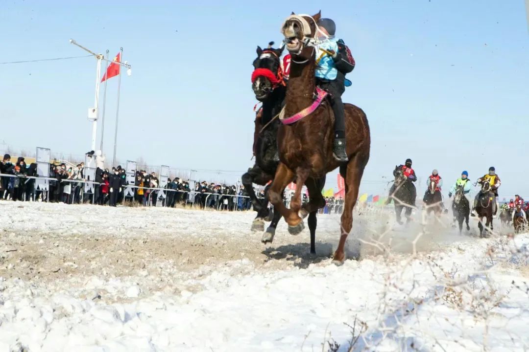 在雪地赛马活动现场,随着裁判一声令下,选手们驾驭着骏马如离弦之箭,驰骋而过。一时间,赛场上马蹄飞扬、雪花飞舞,骑手们英姿飒爽、风采尽显,现场观众纷纷为选手们呐喊助威。一边是冰雪皑皑,一边是赛道角逐,让现场观众切实感受了一把速度与激情。