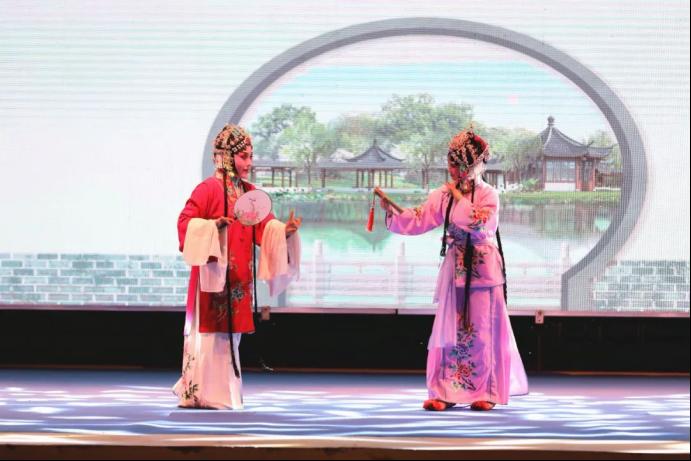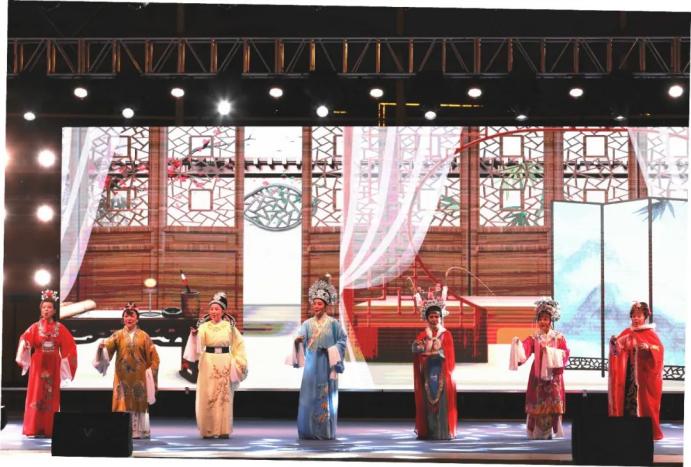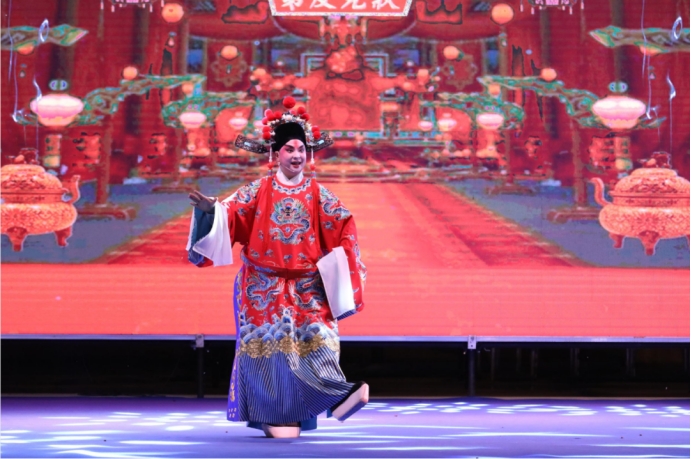演出开始,随着8名“宫女”上场站成八字队型,如众星拱明月般迎接“杨玉环”手持折扇开唱,一曲《贵妃醉酒》正式拉开演出帷幕。优美的舞蹈、华丽的服饰、大段的唱腔瞬间调动起现场观众的热情。一曲唱罢,台下观众热情依然高涨,在欢呼声中国家一级演员李瑞君盛装登台,为观众奉上激昂豪放、通俗质朴的豫剧《花木兰》和《朝阳沟》选段,演员们清新明快的唱腔韵味悠长,充分展现出戏曲的艺术魅力。