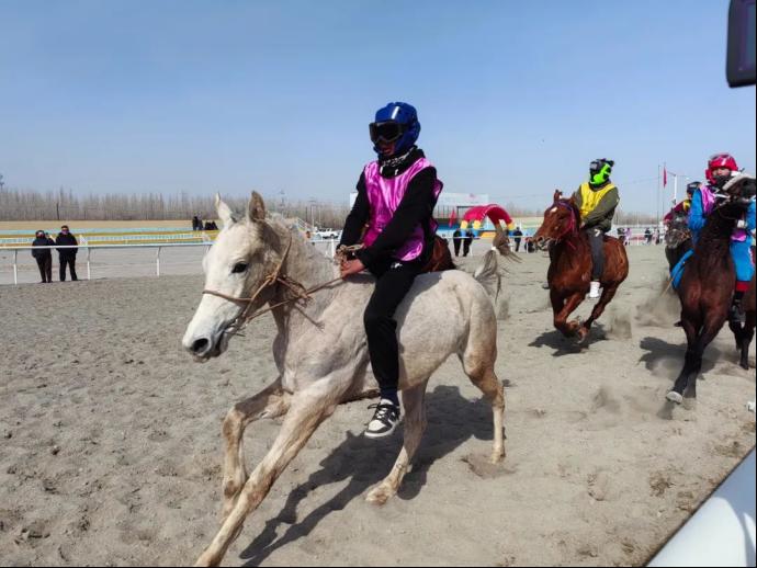 赛场下观众摇旗呐喊,赛场上骑手挥舞缰绳、策马扬鞭,尽情地在赛道上体验着速度与激情。其中令人印象深刻的是一位来自伊犁特克斯县的骑手特列克·居曼阿里,15岁的他从小就热爱赛马这项运动。小小年龄便拥有高超的驭马技术,让他在这场比赛中崭露头角。特列克·居曼阿里说:“这次比赛中,赢得了一岁马和三岁马速度赛马的三等奖,非常高兴,这对我是一种肯定和鼓励,我会继续练习赛马,把赛马这项民族文化体育项目传承下去。”