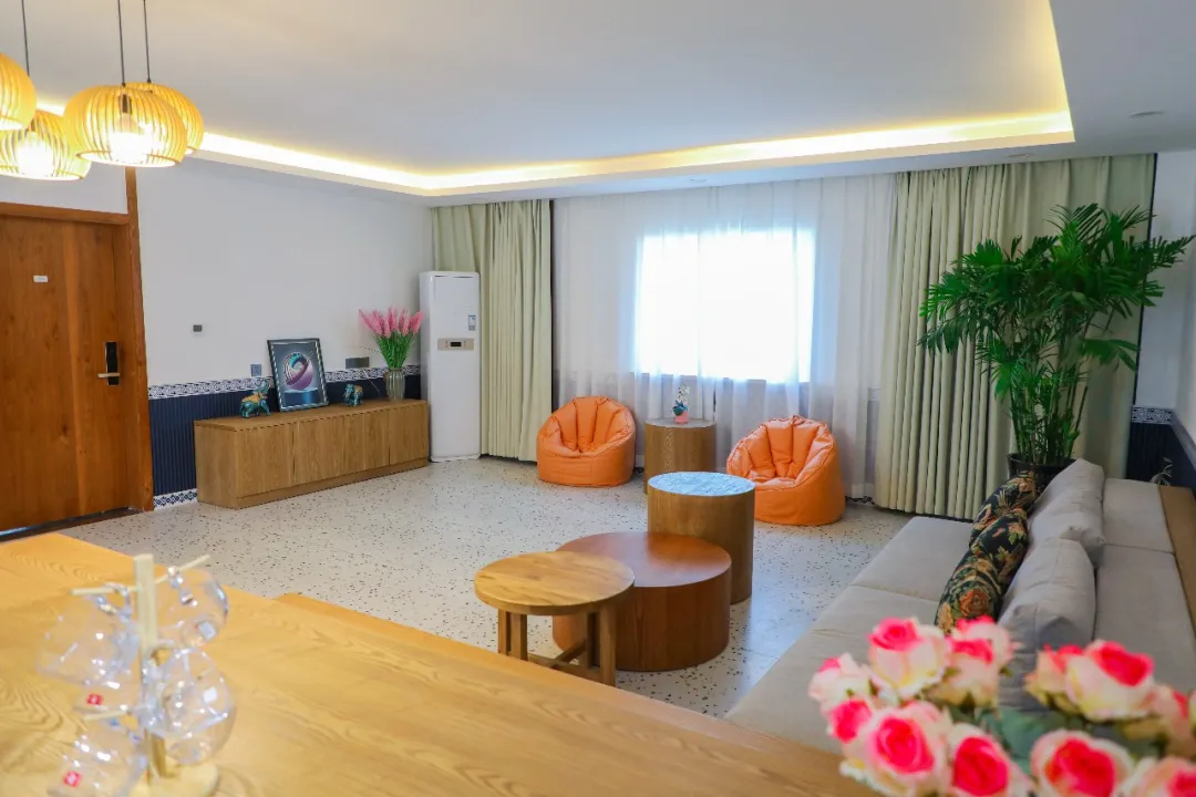来自乌鲁木齐的游客祖克热·吐达洪和好友一起旅游,这里的住宿环境让她十分惊喜。她说:“这里环境优美,空气清新,民宿里的装修也非常符合年轻人的需求。周围还有荷花池、菊花观景台等值得去的打卡地,能体验采摘草莓、车厘子的乐趣,价格也很亲民,我会推荐朋友来这里住宿体验。”该民宿位于精河县城外3公里处,具有独特的区位优势,占地面积2600平方米,目前拥有民宿16座,可同时容纳200余人居住。独立卫生间、洁白的床铺、电视、热水器、抽水马桶一应俱全,其周边配备了农业产业、水产产业系列休闲娱乐区,让游客们体验感十足。