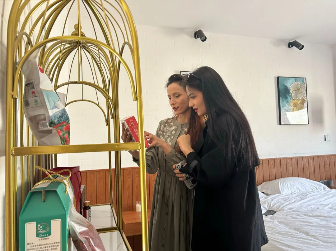 游客玛依但·乌拉依木是一位美食爱好者,在美景中寻找美食,是她旅行最大的乐趣。应朋友之邀来到茫丁乡五棵树村田园综合体园后,让她感叹:“这里风景很美,住宿条件也非常高端。我在这里吃到了特色美食石头焖肉,还喝上了骆驼奶,让我惊喜的是还有这么多枸杞产品,准备带给家人尝尝。在这里收获颇丰,真是不虚此行。接下来,我还计划去巴音阿门景区、大小海子转转。”