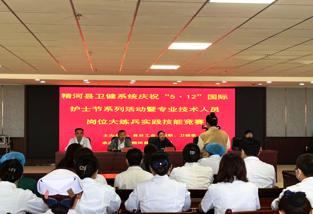 为进一步加强精河县医疗卫生行业内涵建设,营造讲学习、钻业务、练技术、比水平的良好氛围,5月8日,由精河县卫健委、县总工会、县妇联联合举办的精河县“5·12”国际护士节系列活动暨医疗专业技术人员岗位大练兵实践技能竞赛在县人民医院举行,县人民政府副县长吴开华出席活动并讲话。