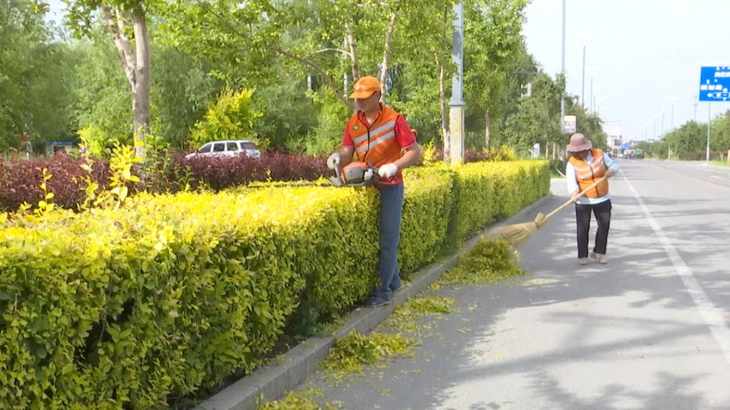 精河中环洁城市环境服务有限公司园林所所长王鹏飞介绍道:“我们班组一共15人,从五月中旬开始在全县开展绿篱修剪工作,预计一周左右就可以完成修剪。”据了解,精河中环洁城市环境服务有限公司环卫中心组织200余名作业人员,出动洒水车、雾炮车、湿扫车等36台车辆和园林设备,已修剪清理绿篱、花草绿地50万平方米。