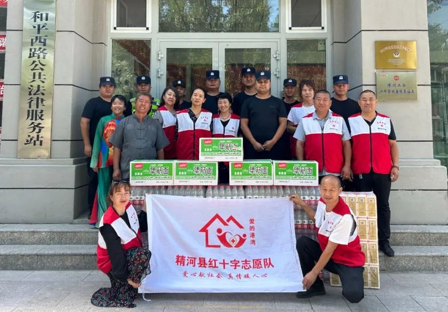 7月31日,精河县爱的港湾红十字会志愿服务队来到县人民武装部生产连、县消防救援大队,为各位官兵送上节日的祝福及慰问品,并通过精彩的节目感谢他们为全县经济社会发展做出的贡献。