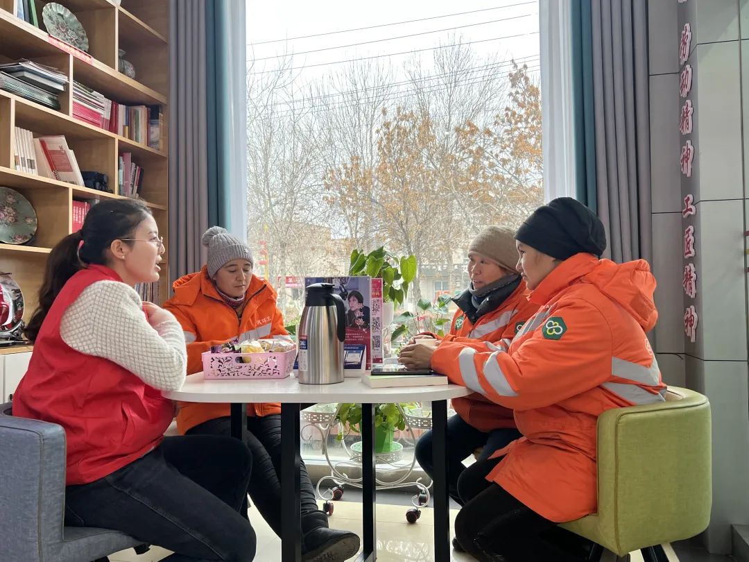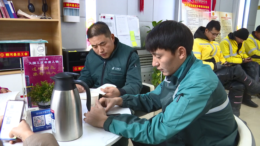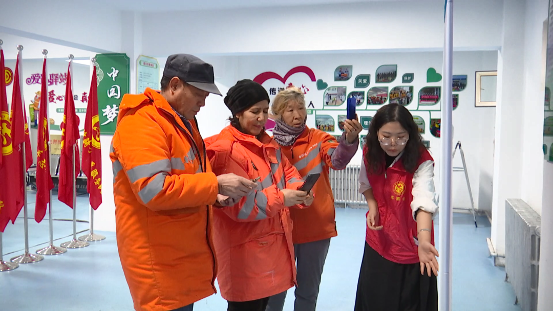 在精河镇幸福社区工会户外劳动者服务站点,精河中环洁城市环境服务有限公司环卫工人廉金伍与同事们正在室内休息。廉金伍告诉记者,他负责的卫生片区在该工会户外劳动者服务站点旁边,有了这样一个舒适、温馨的户外劳动者服务站点,给他的工作带来了不少的便利。“站点服务保障好,设施非常齐全,休息站的选址也很用心,冬季温度低,结束上午的工作后,我们会来这里休息、取暖、歇脚。”廉金伍说。