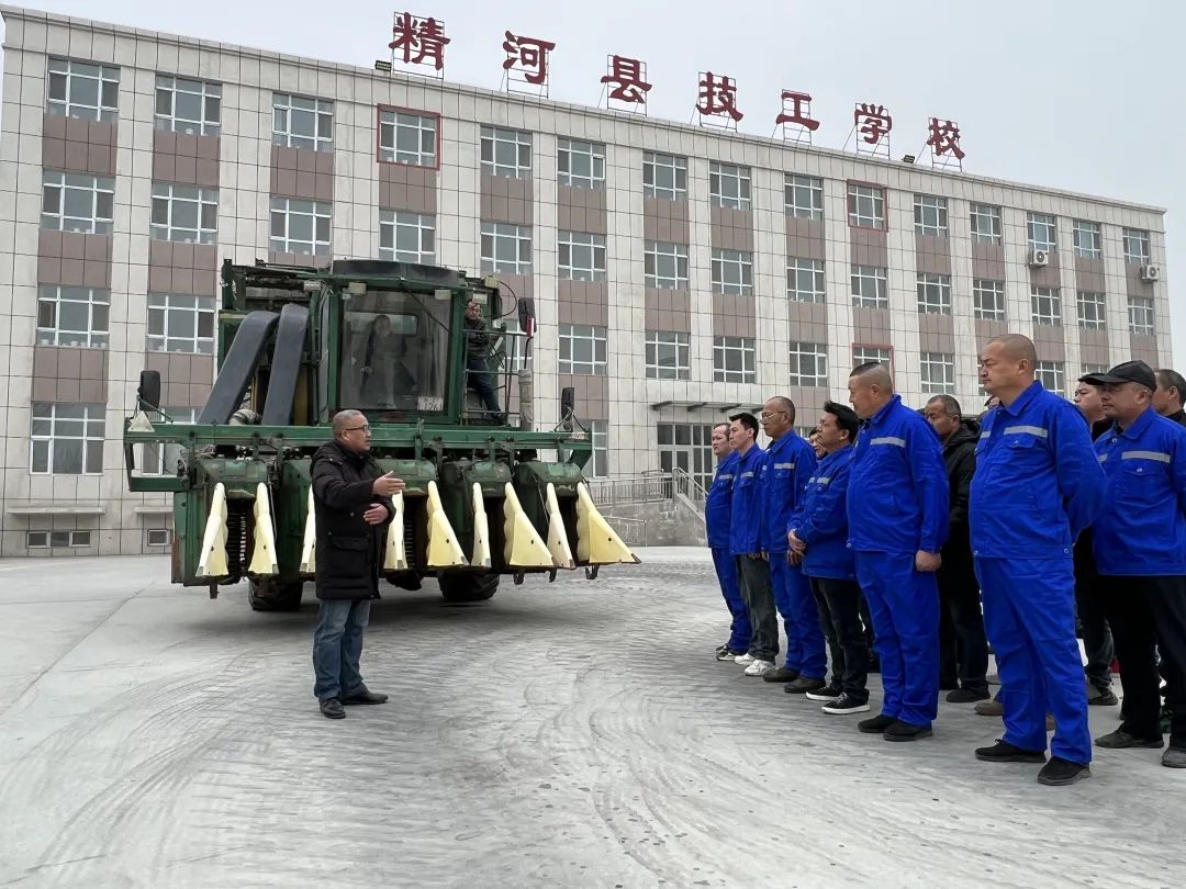 近日,在精河县技工学校采棉机实操场地,学员们在老师的指导下操控着采棉机,伴随机械的轰鸣声,学员们正在轮番进行操练。