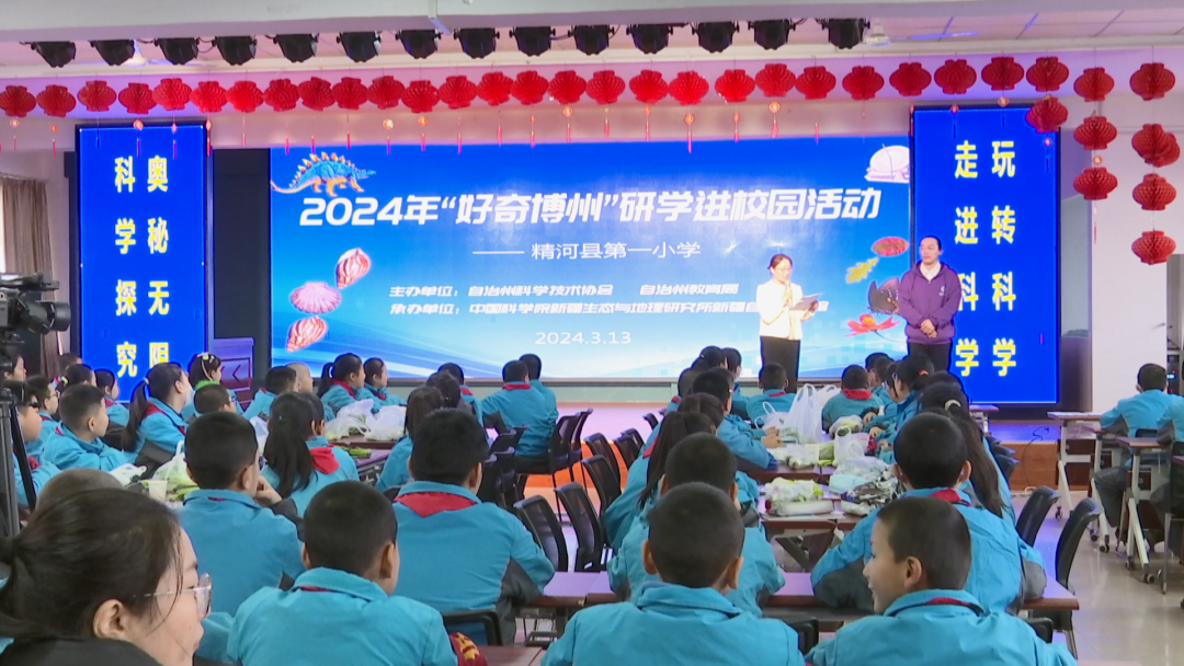 近日,精河县科学技术协会邀请中国科学院新疆生态与地理研究所新疆自然博物馆的老师们到精河县各学校开展“好奇博州”研学进校园活动,为全县 1000 余名中小学生带来了一场别开生面、妙趣横生的研学课程。