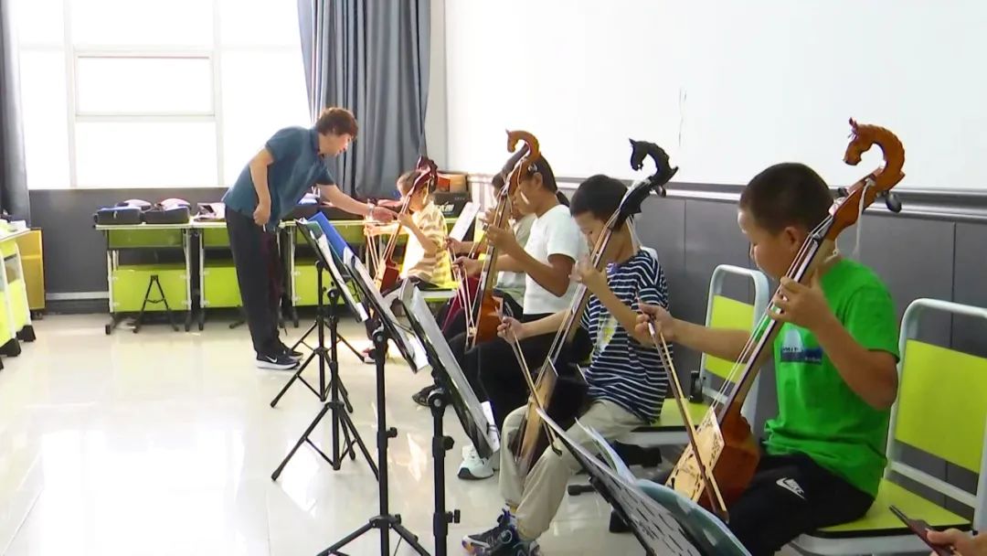 走进青少年活动中心马头琴活动室内,马头琴非遗传承人孟克巴雅尔正在为学生进行授课,他采用“理论讲解+现场表演”相结合的形式,向学生们教授马头琴基础知识、调试音阶、基本乐理知识和打弦、揉弦、滑音等演奏技巧。