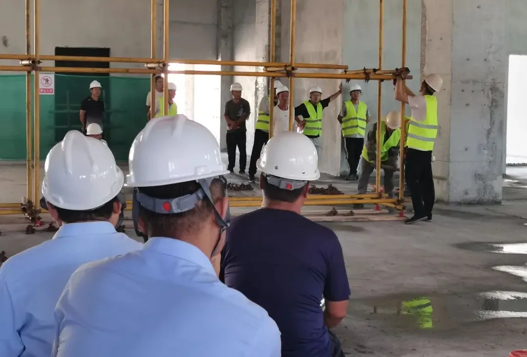 观摩会现场,专家赵虎采用理论讲解、实操演示以及案例分析等多元形式,深入阐述了脚手架搭设的标准规范、安全隐患排查与整改、临时用电系统的安全配置与维护等关键内容。让与会人员对施工安全管理有了更全面、深入的认识,提升了加强施工现场安全管理的信心。在演练环节,参会的架子工在专家组的指导下进行脚手架搭设的实际操作。期间,专家及时纠正错误动作,反复强调安全细节,确保与会人员熟练、规范掌握操作技能。