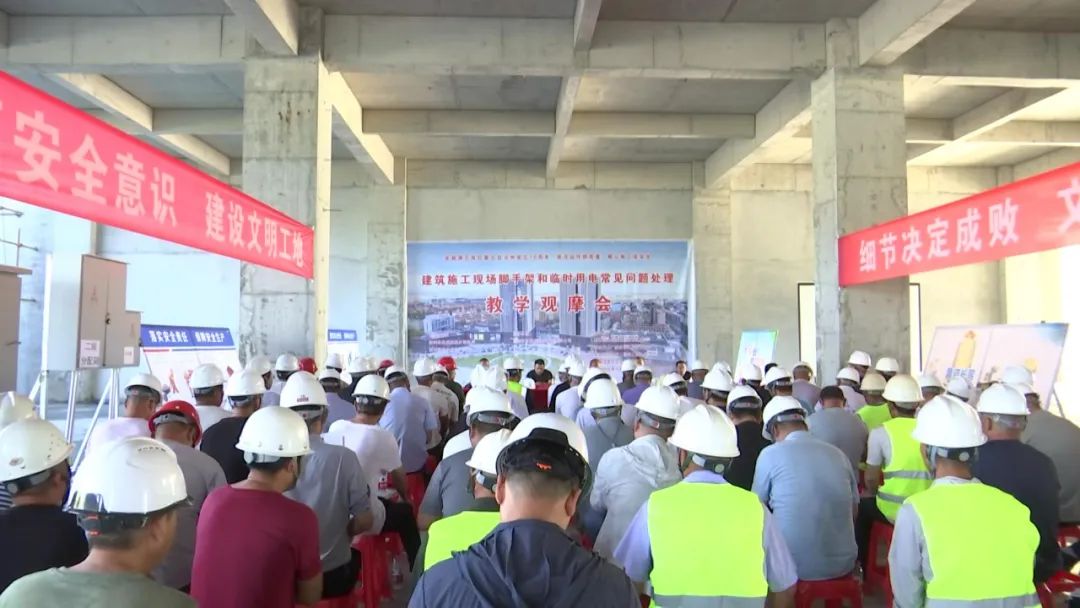 近日,由精河县住房和城乡建设局与博州建筑业协会联合主办的建筑施工现场脚手架和临时用电常见问题处理教学观摩会,在精河胡杨河畔生态园林酒店建设现场举行。精河县在建各建筑工程项目部负责人、架子工、电工及安全检查员等100余人参加。