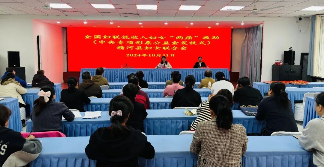 近日,精河县妇联举办低收入妇女“两癌”救助2024年中央专项彩票公益金发放仪式。受助妇女、茫丁乡各村队(社区)妇联主席等30余人参加。