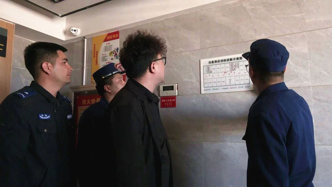 联合检查组来到精河县泊晶酒店,详细检查了酒店的消防安全管理制度是否健全、安全出口和疏散通道是否保持畅通、消防设施是否完好有效、消防安全教育培训是否落实到位,并实地查看微型消防站建设与执勤情况。