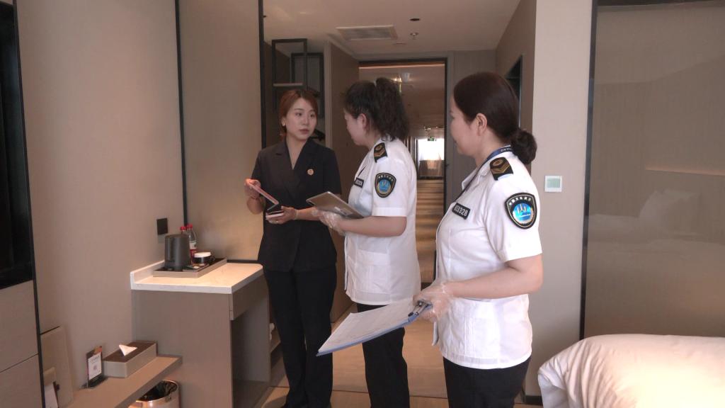 在巴里岛国际酒店,卫生监督员着重检查客房床上用品、毛巾、浴巾等公共用品用具的更换及消毒记录,并对从业人员健康证、消毒间设置、布草间运行及公共用品用具消毒流程等进行全方位监督。对检查中发现的问题,执法人员当即要求整改,并提醒各经营单位在节假日人流高峰,务必加强通风换气与消毒保洁,全面清理卫生死角。“这次检查对我们是很好的指导,我们立即进行了整改。后续也会加强员工培训与定期自查,保障酒店卫生安全。”巴里岛国际酒店负责人谭广林表示。据悉,此次共检查全县18家酒店,县疾控中心卫生监督员唐海燕说:“后续,我们将持续加大监督检查力度,助力全县旅游市场健康发展。”
