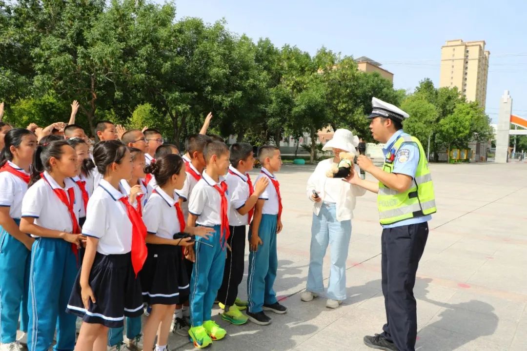 近日,精河县公安局交警大队走进精河县第一小学,开展了一场寓教于乐的交通安全宣传活动,为孩子们送上一份特殊的 “安全礼”,助力孩子们在节日期间走亲访友、外出游玩时平安出行。
