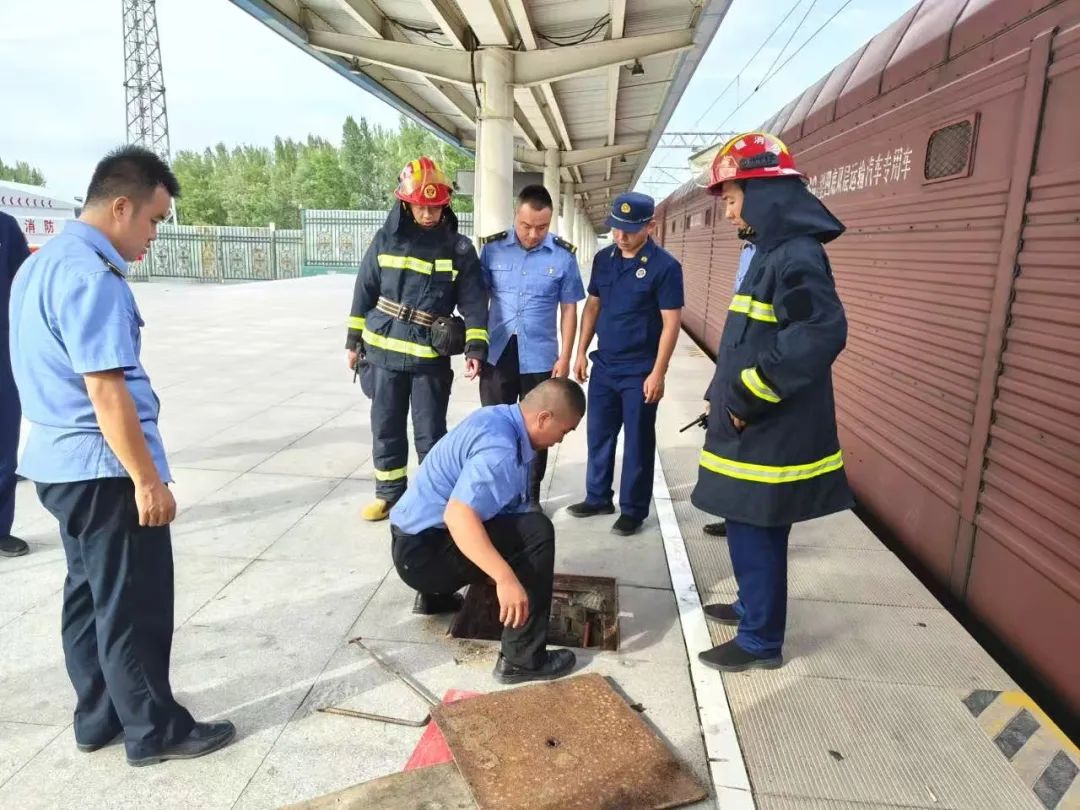 近日,乌鲁木齐铁路公安局奎屯公安处精河南站派出所联合精河县消防救援大队在精河南火车站开展“检查+培训+宣传”三位一体安全行动,通过隐患排查、实操演练及面向广大旅客和职工群众的沉浸式普法宣传,全面构筑夏季消防安全“立体防线”。