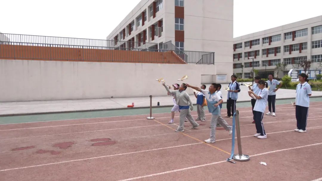 除了火箭模型组,操场上的一级橡筋动力滑翔机留空竞时赛项目组、手掷滑翔机直线距离赛项目组也都在紧张有序地进行着测试,不断调整着模型的各项参数,力求达到最佳状态。