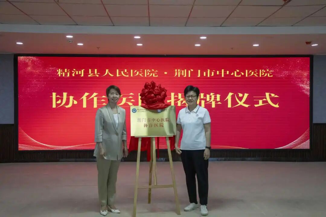 荆门市中心医院院长余红与精河县人民医院党委书记张卫芳共同为协作医院揭牌,并代表双方医院签订了医疗技术协作协议。