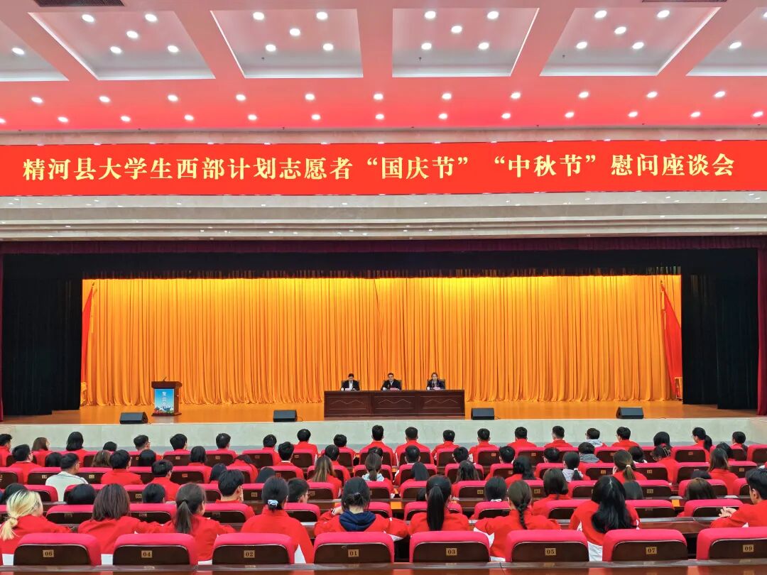 9月26日,精河县召开大学生西部计划志愿者“国庆节”“中秋节”慰问座谈会。县委书记伏耀龙出席座谈会并讲话。县政协党组成员、副主席邓海红主持座谈会。县团委有关负责同志,各单位、各乡镇大学生西部计划志愿者参加座谈会。