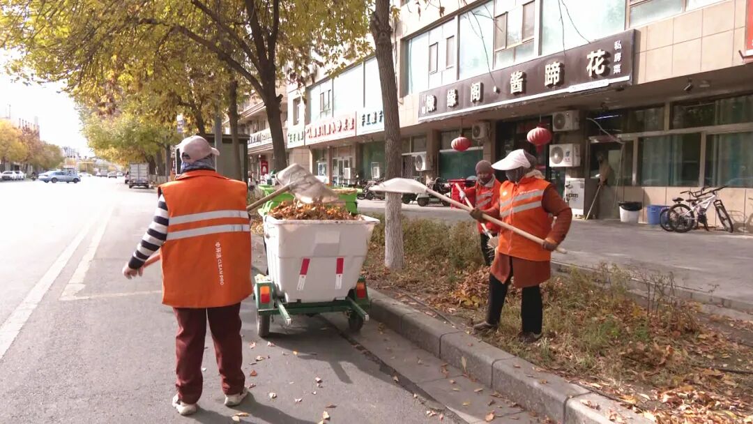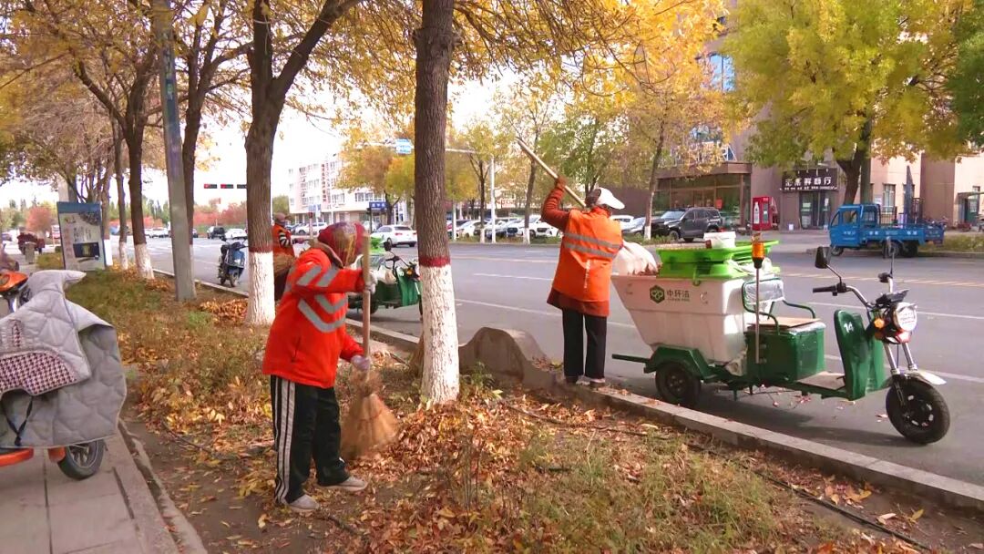 10月14日,记者在精河县乌伊路、友谊路等地看到,身着醒目工作服的环卫工人们,手持扫帚、簸箕等工具,在各自负责路段忙碌,有序开展路面落叶清扫与垃圾清运等日常工作。