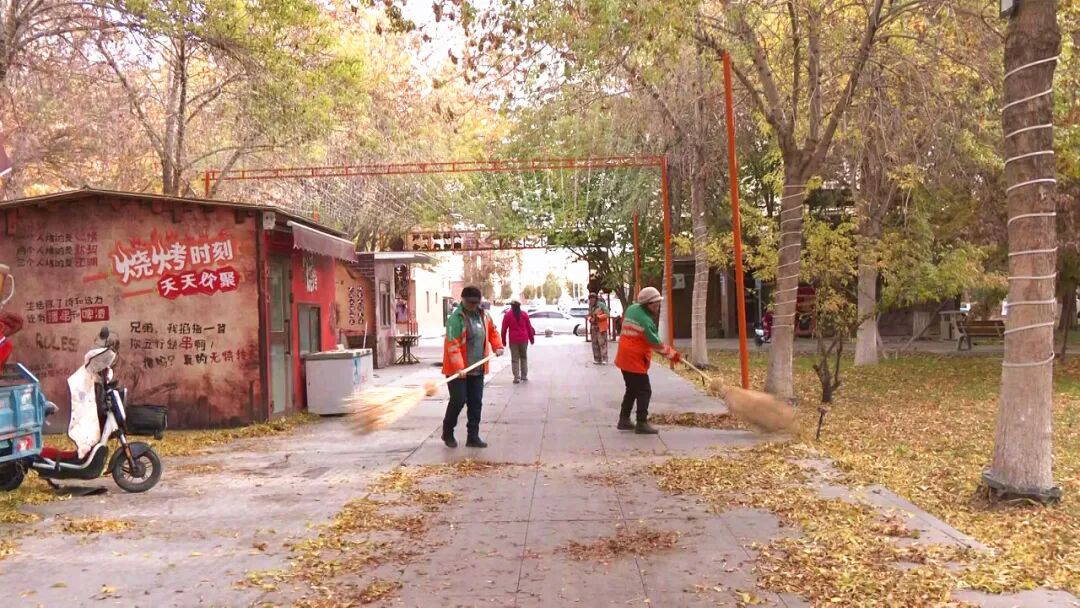 该公司扫保组三组组员巴哈特·牛头别克说:“这阵路上落叶比较多,我们每天早早到岗,就想尽快把树叶清理干净,让群众出行更加方便。”
