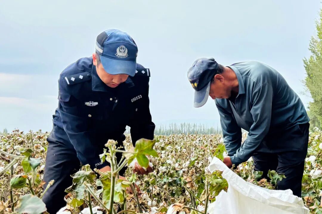 在茫丁乡的棉花田地,民警们挽起袖子,与农户一同采摘棉花。“刘叔,最近有骗子冒充收购商,先付少量定金获取信任,再以垫资发货为由实施诈骗,您一定要提高警惕。”民警们一边劳作,一边结合近期发生的典型案例,深入浅出地讲解电信诈骗的常用伎俩,同时还提醒农户注意棉花储存的防火防盗事项。
