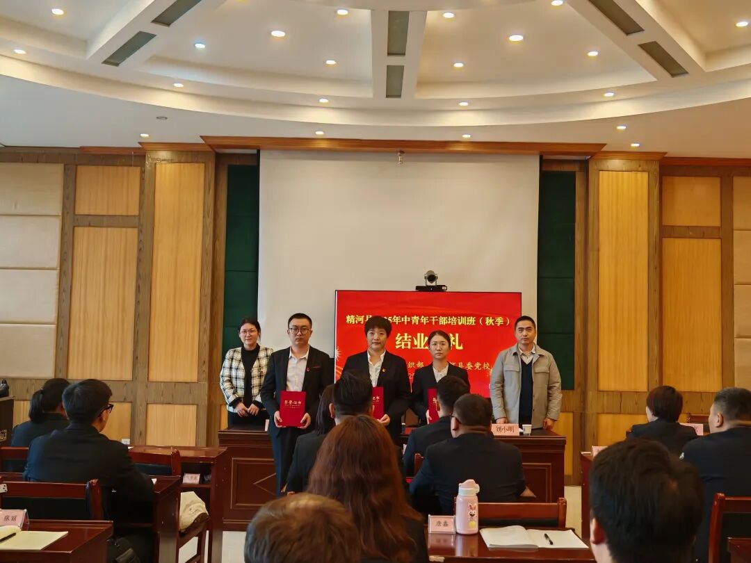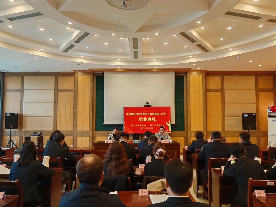 10月21日,精河县2025年中青年干部培训班(秋季)结业仪式在精河县委党校举行,县委组织部相关负责人、县委党校相关领导及教职工、中青年干部培训班全体学员参加结业仪式。