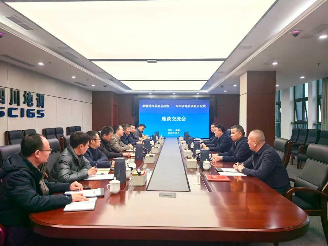 在四川省地质调查研究院,考察团与研究院相关负责人进行了座谈交流,双方围绕矿产勘查与资源综合利用、生态修复、地质灾害防治等领域达成多项共识。