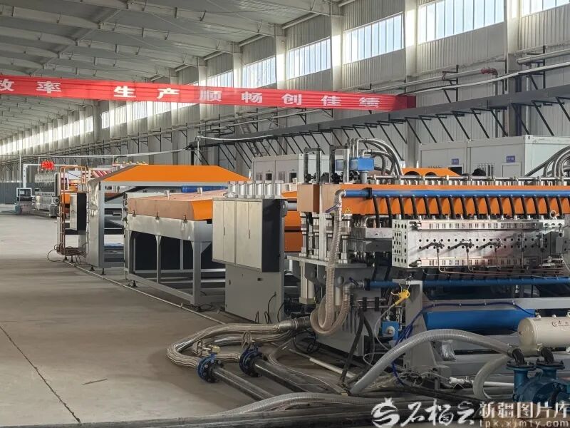 在新疆凯程公司生产车间,从原料制粒到装订打包,3条自动化智能生产线高速有序运转,碳基高分子环保包装箱下线发运,企业年产值可达6000万元。