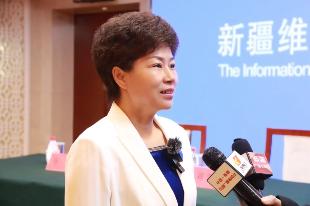 博州党委常委、宣传部部长张莉英现场接受采访。