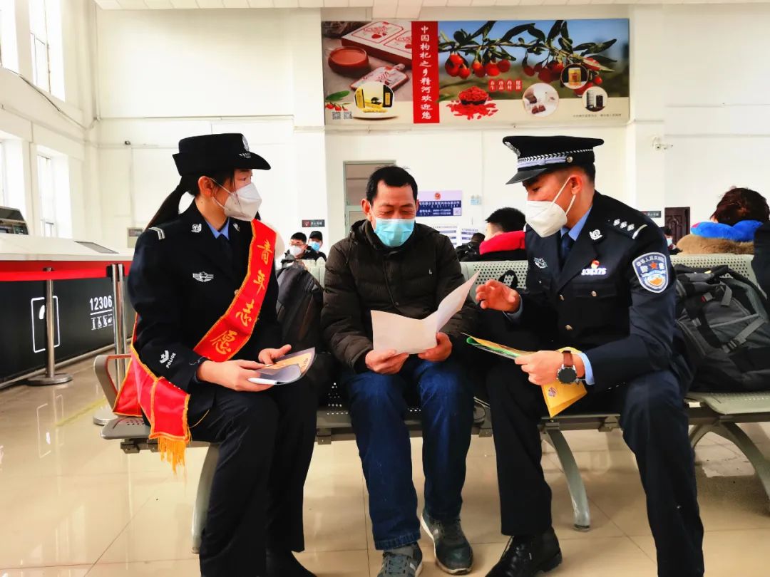为确保旅客平安出行,乌鲁木齐铁路公安局奎屯公安处精河南站派出所采取固定岗位和巡逻相结合的方式,积极开展防电信网络诈骗宣传,通过“以案释法”、发放宣传册、推荐安装“国家反诈中心”APP等方式,向旅客普及电信诈骗犯罪惯用手法、作案方式,进一步强化旅客防范电信诈骗意识,为 “平安春运”筑牢安全屏障。