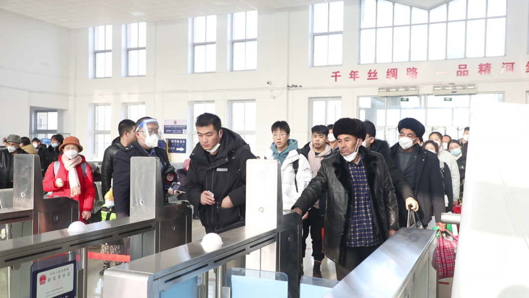 1月30日,记者在精河南火车站看到,返程旅客们拉着大大小小的行李箱、礼品袋走向进站口,有序地经过安检,进入车站候车室。乌鲁木齐局集团公司霍尔果斯站精河南站客运值班员杨莹介绍说:“今天有8趟列车,分别是精河南发往伊宁、乌鲁木齐方向的列车,预计旅客发送量600人次。”