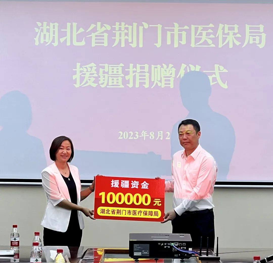 座谈会上,荆门市医疗保障局为精河县医疗保障局捐赠10万元援疆资金。高文生代表精河县委、县政府对近年来荆门市医疗保障局对精河县的深切关怀和无私援助表示感谢,精河县将以此次调研交流为契机,加强与荆门医保的交流沟通,虚心学习医疗保障方面的做法和经验,奋力谱写精河医保事业高质量发展新篇章。