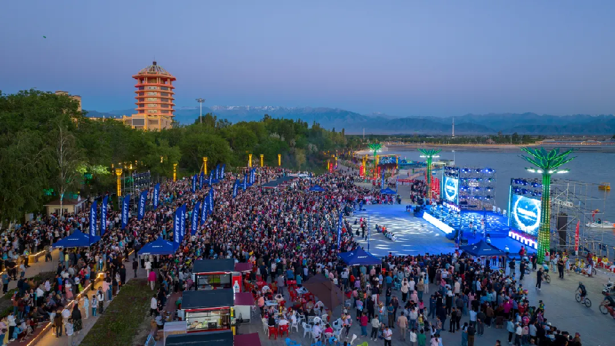 精河县是荆门市对口援疆县。荆门市文化和旅游局接到邀请函后,认真创排了两个节目,助力精河赛事。荆门的艺术家将湖北山水之景、文化之美呈现给现场的新疆人民。热情的新疆观众与台上歌手挥手互动。新疆人民领略到湖北人文风情,援疆干部感受到了熟悉的家乡味道。湖北、新疆一家亲,文化碰撞增添新活力。