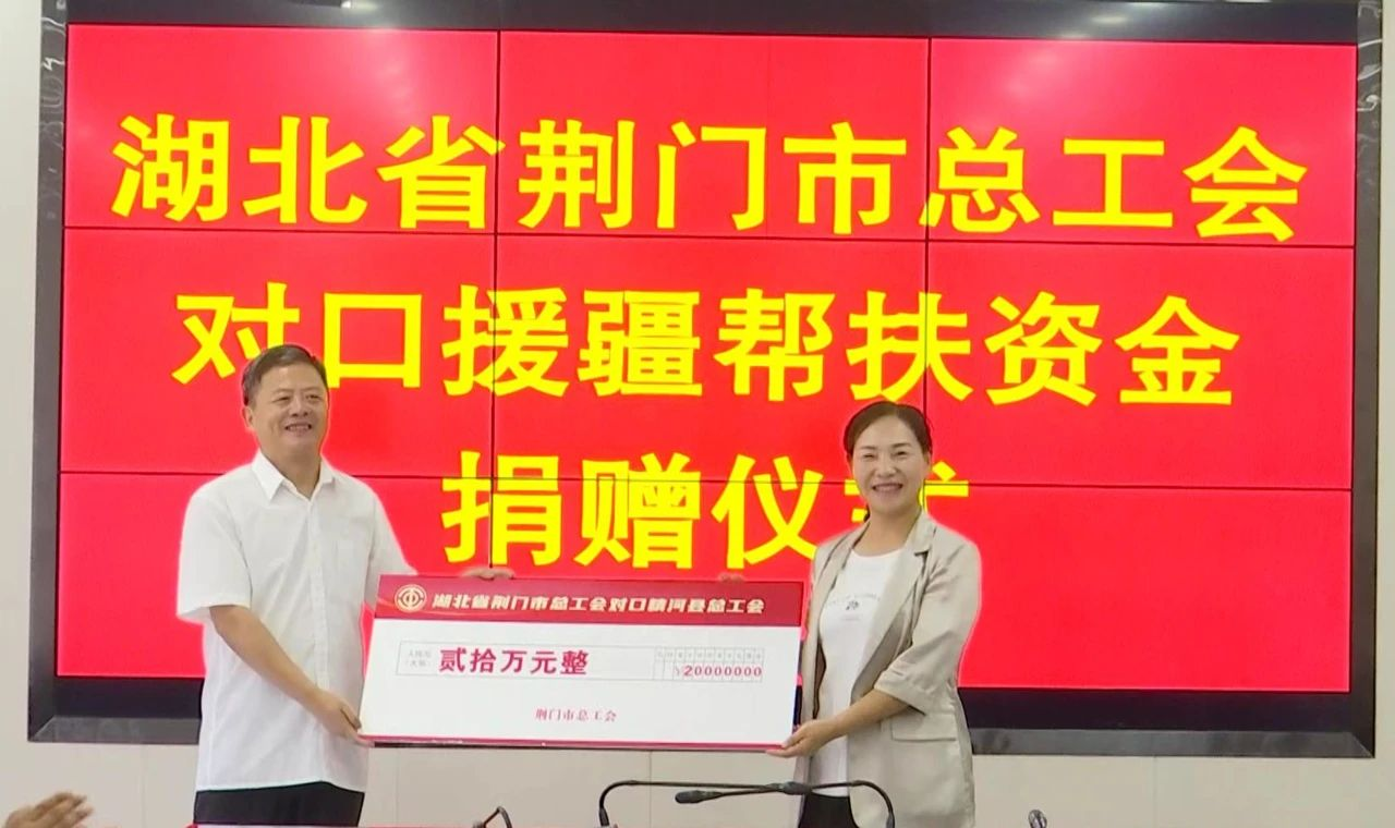 随后,精河县总工会汇报了工作开展情况,荆门市总工会向精河县总工会捐赠20万元援疆资金。