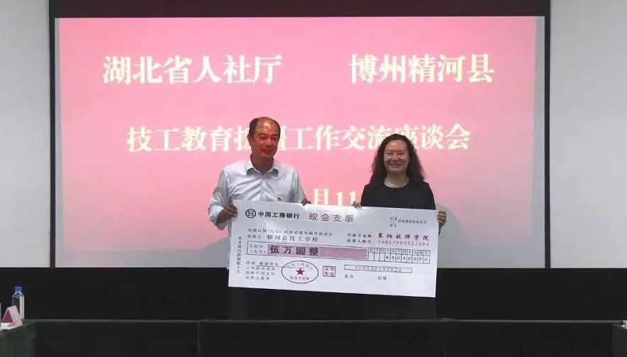 随后,襄阳技师学院为精河县技工学校捐赠5万元援建资金,钟祥技师学院为精河县技工学校捐赠5万元实训设备,中国人力资源和社会保障出版集团有限公司湖北发行站为精河县技工学校捐赠10万元图书,湖北新产业技师学院与精河县技工学校达成共建健康与社会照护实训室协议。