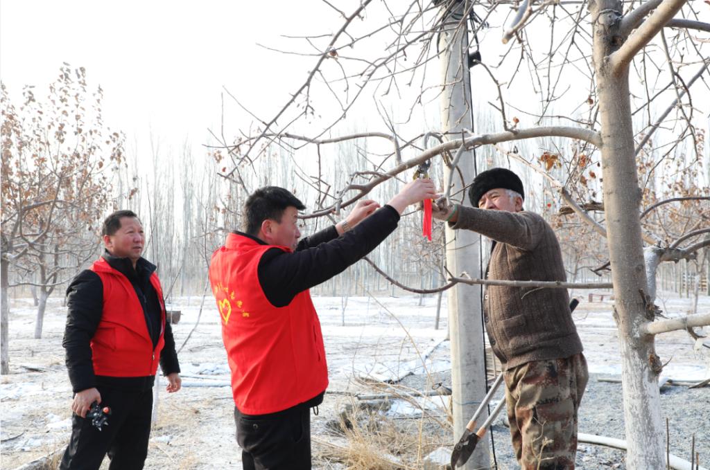 阿西汗•库万激动地说:“非常感谢志愿服务队的帮助,他们经常来看我,帮我卖苹果、盖房子、买药、购买农资。在他们的帮助下,半个月就能完成果树剪枝工作。”