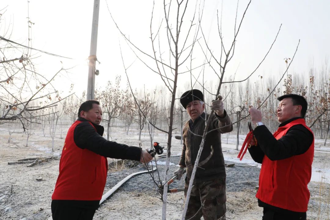 阿合其农场农四队职工阿西汗•库万今年已70岁,种植20亩果园,每到春秋季打理果园时就是她最犯愁的时候。据她介绍,果树剪枝是十分重要的环节,剪枝能调整树形,让果树更大化的进行光合作用,从而结出的果子质量更好、产量更高。但因自身年龄较大,儿女也不在身边,家中的农活都落在了她一个人身上。阿合其农场农四队志愿服务队通过摸排得知这一情况后,立即前往阿西汗•库万家中,为她开展农业技术指导服务,解了她的燃眉之急。