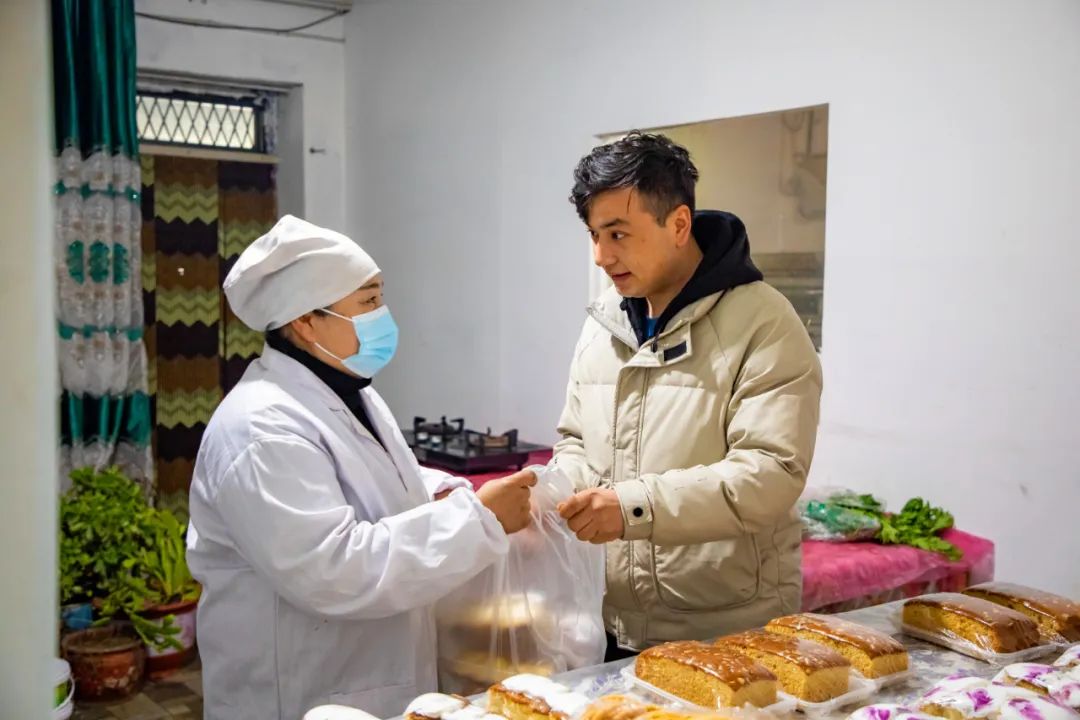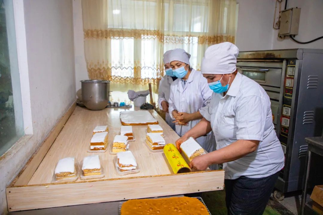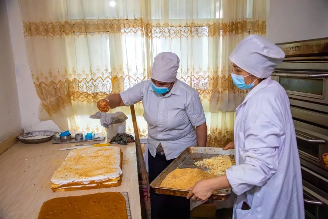 通过7年多的精心经营,博斯唐·哈森阿洪的糕点生意越做越红火。有时店里忙不过来,她还会邀请村里的姐妹们过来帮忙,手把手教她们制作糕点。如今,她已经成功培养了3个徒弟,其中1人已经开店,走上了自主创业的道路。